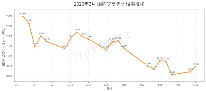 結果として、2026年3月の国内プラチナ相場は次のような推移となりました。