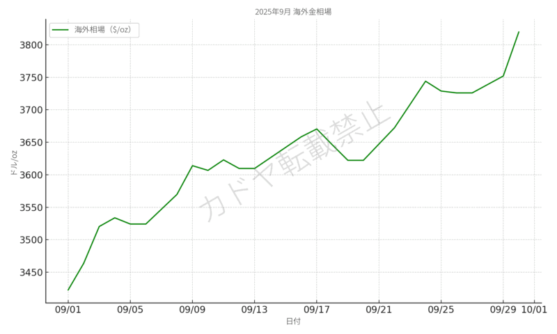 2025年9月の金相場は、月を通じて力強い上昇を見せました。