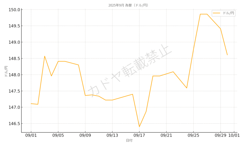 一方で、為替相場(ドル/円)は月初の147円台前半からスタートしました。その後もおおむね高値圏を維持し、円安基調が国内金相場を下支えする要因となったのです。