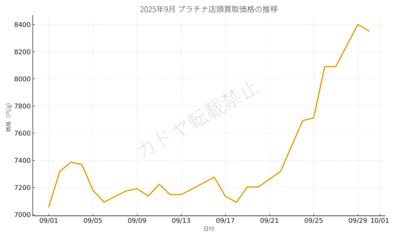 2025年9月のプラチナ相場は、月を通して力強い上昇基調を示しました。