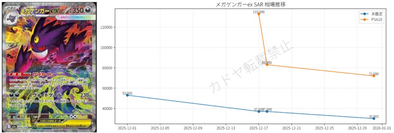 メガゲンガーex SARは、12月に入ってから短期間で大きな価格調整が入ったカードのひとつです。