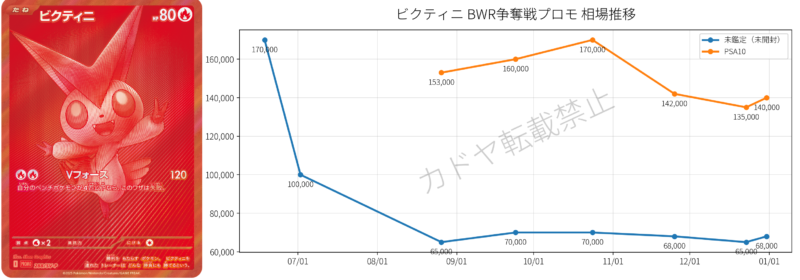 ビクティニ BWR争奪戦プロモは、11月に起きた供給イベントの影響が、12月相場で整理されたカードといえます。