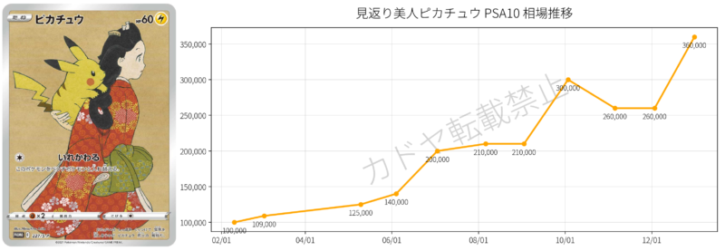見返り美人ピカチュウ PSA10は、12月後半にかけて相場が大きく上昇しました。