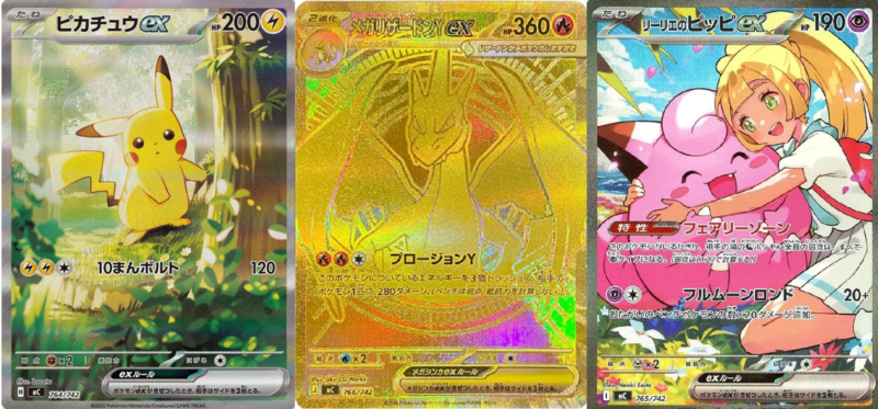 一方で、ピカチュウex SARやリーリエのピッピex SARは、いずれも4万円前後でのスタート。極端な高騰は見られず、比較的落ち着いた価格帯に収まりました。