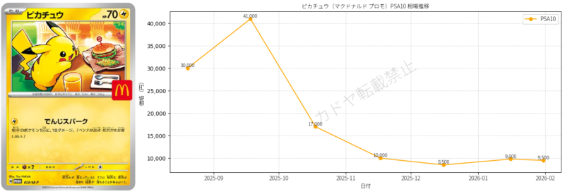 マクドナルド ピカチュウ PSA10は、「枚数が多い=必ず下がり続けるわけではない」という点を示したカードといえるでしょう。