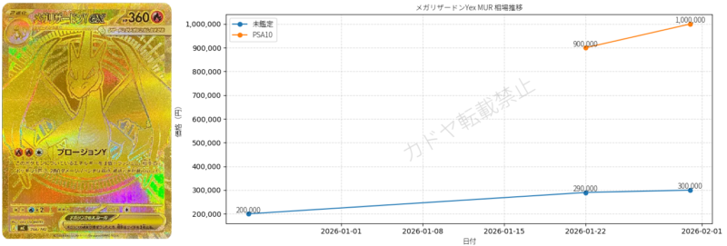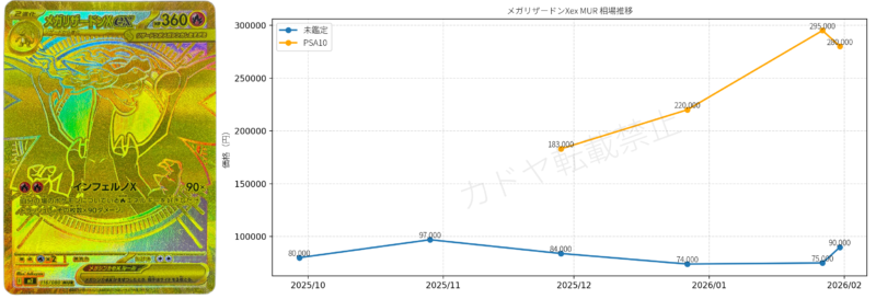 メガリザードンXex MURは、2026年1月相場において、未鑑定とPSA10で評価の差がより明確になったカードといえます。