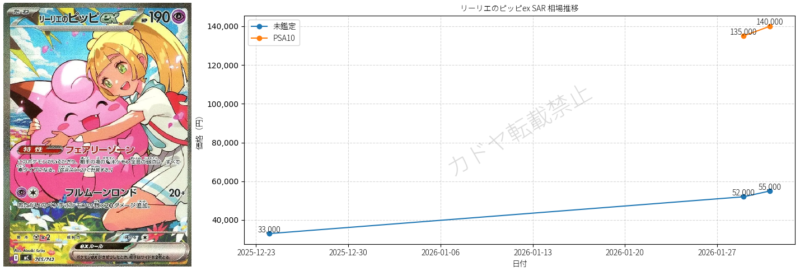 リーリエのピッピex SARは、2026年1月相場において、比較的わかりやすい上昇を見せたカードです。