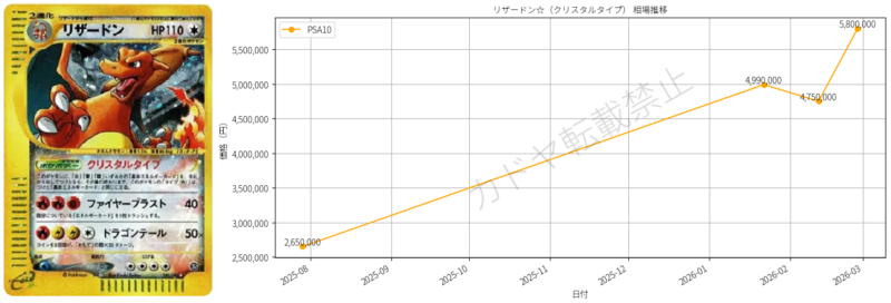 価格推移:2026年2月27日時点で5,800,000円(PSA10)