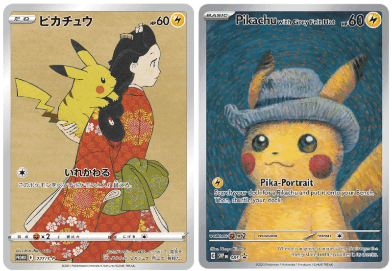 とくに「見返り美人ピカチュウ」や「ゴッホピカチュウ」などのカードは象徴的です。