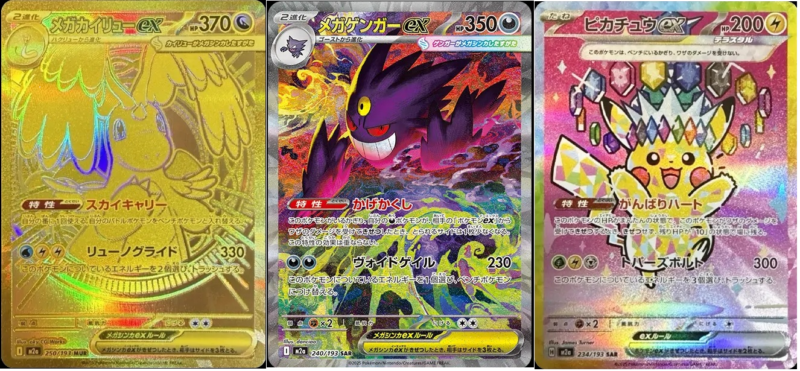 とくにメガゲンガーex SARは人気が高く、再販が続く中でどこまで相場を維持できるかが注目点です。